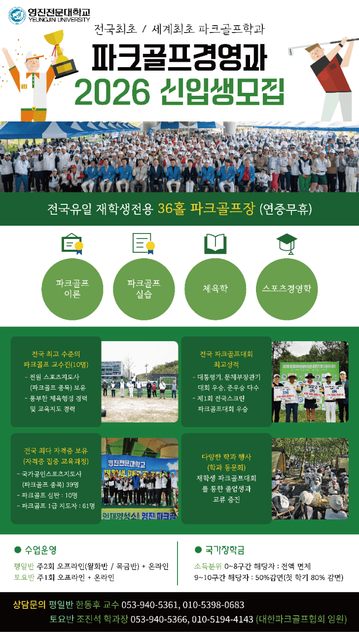 단순한 운동이 아닌 전문성 있는 진로로 키워내는 교육, 영진전문대학교 파크골프경영과에서 시작해보세요.