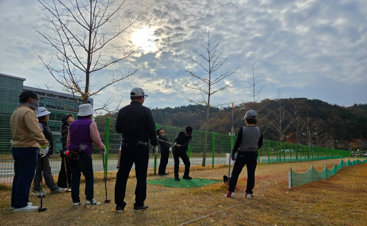 학생들은 자연스럽게 18홀 전용 파크골프장으로 모입니다.